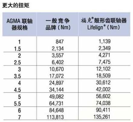 ? ? 福克鼓型齿联轴器Lifelign卓越的开孔能力和扭矩等级可以使用户在相应工况下选择较小规格的联轴器。60HZT型框架电机选用的联轴器相对于28型电机框架要小一个规格,比其他产品的质量、可靠性和性能更好但成本可以平均节约15-20。更小的外形尺寸适合在一些有空间限制但需要较大孔径和扭矩的场合使用。