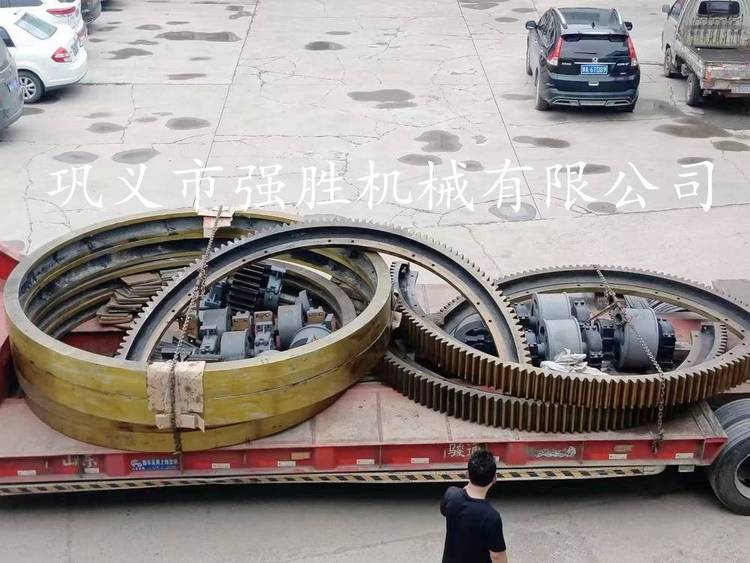烘干机大齿轮统称为烘干机配件,不少厂家也叫做大齿圈,主要是用来传动烘干机整机进行运作的传动件,巩义市强胜机械加工厂 批量生产各种烘干机大齿轮,滚圈,托轮挡轮配件,材 证45#铸钢件,其钢的材质在ZG310-570,经过立车进行加工,滚齿机加工而成,表面硬度不低于HB170,本厂各种齿轮图纸 ,产品全部自行铸造、自行加工,优惠,欢迎惠顾!