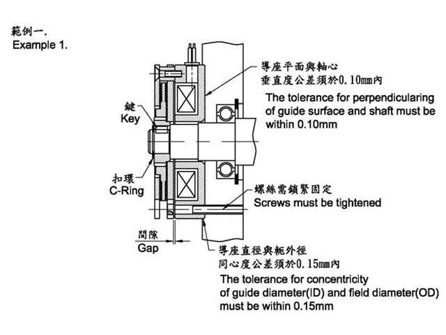 剎車器與軸套配合時不可敲打以免來令片變形。