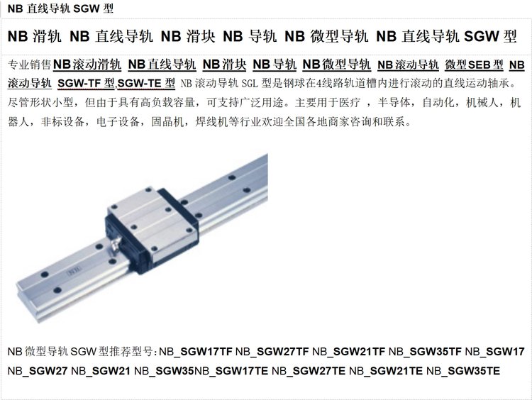 NB直线导轨SGW型耐磨防腐防锈精度高日本进口高精度长度自由选择