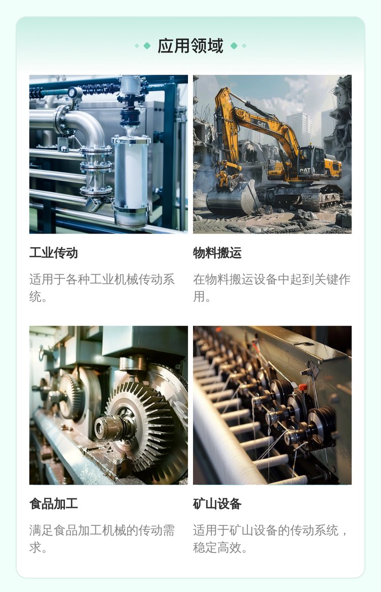 用途范围 | 广泛用于机械传动、物料搬运等领域。 | ||