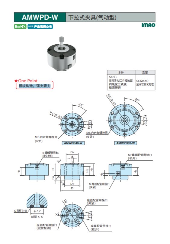 销售日本今尾IMAO下拉式夹具(气动型)