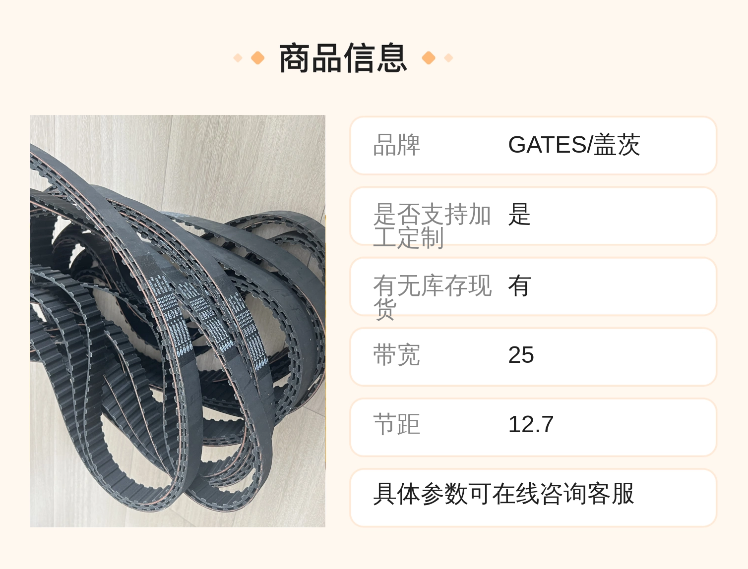 商品名称 | 美国盖茨同步带 | ||
