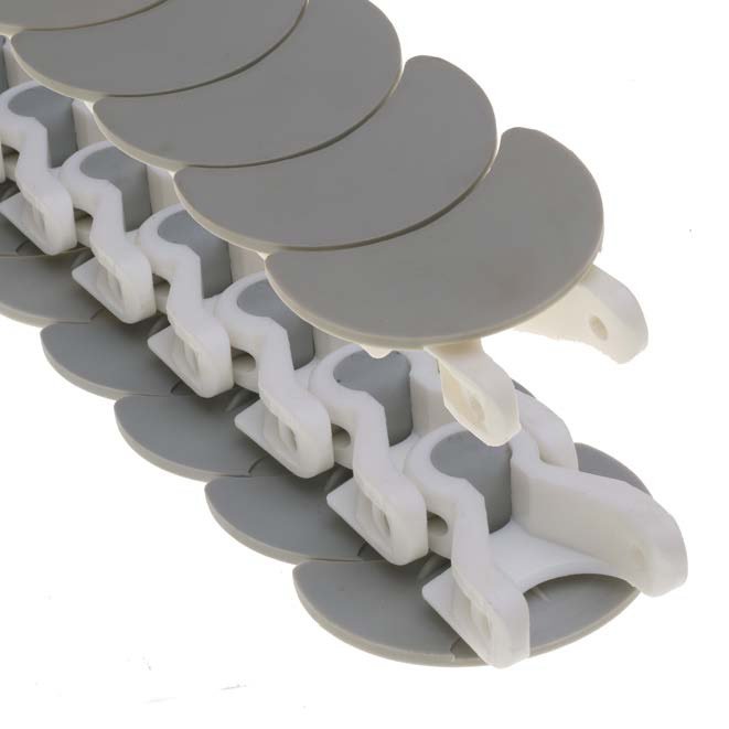 零间距1765龙骨铰链拥有设计的顶板。当该款链条在转弯轨道或链轮上运动时,链条表面始终保持封闭状态。