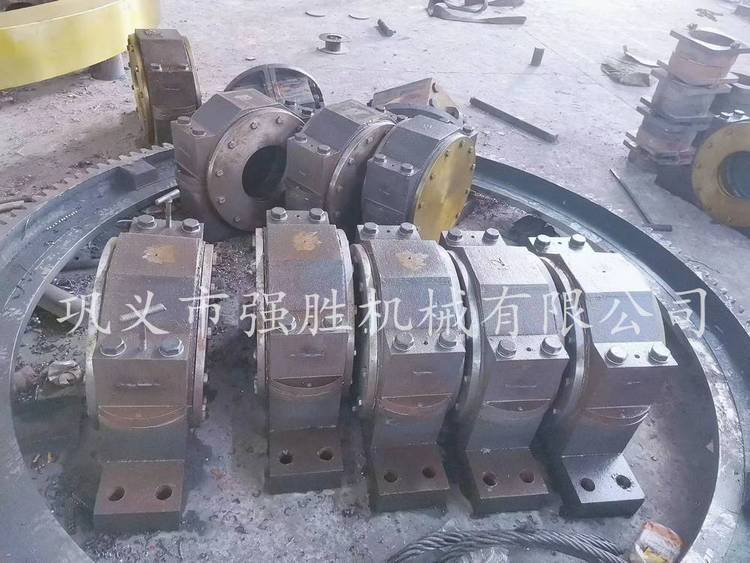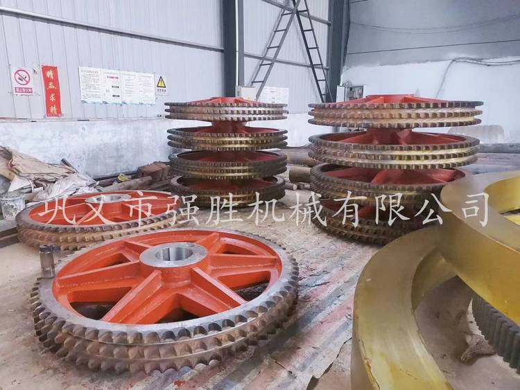 回转窑大齿轮或旋窑大齿轮是回转窑传动的重要部件,采用铸钢材质,经加工滚齿成品,具有 性好,传动平稳, 应用于水泥,化工,矿业,冶金等行业。巩义强胜机械铸造加工各种回转窑大齿轮,滚圈托轮,小齿轮等配件。