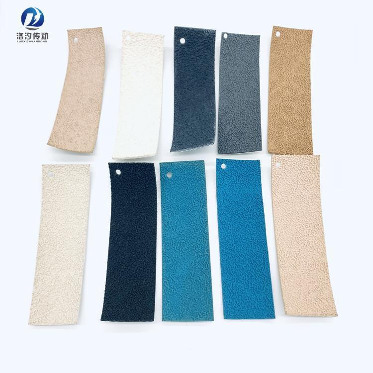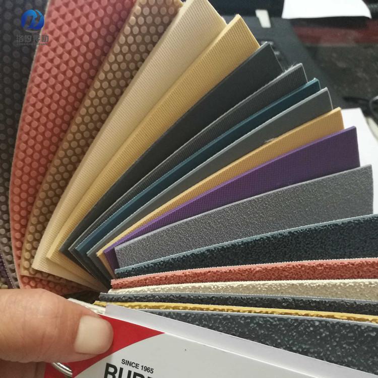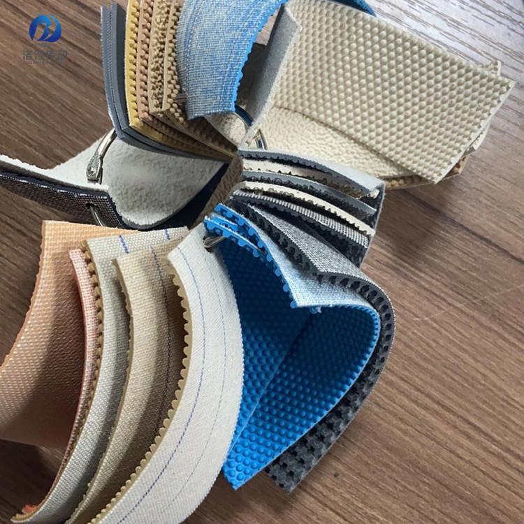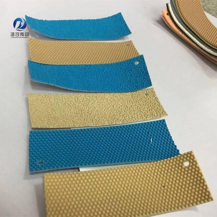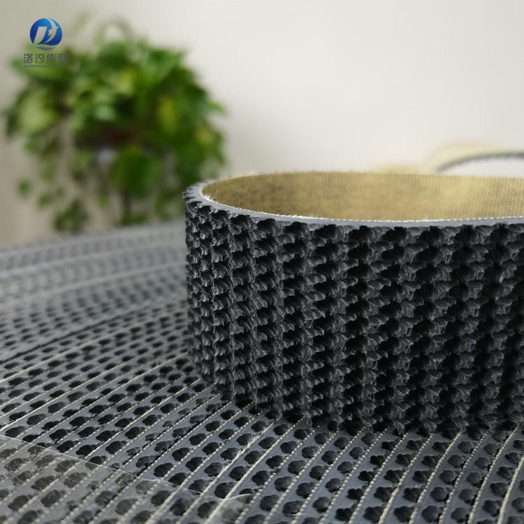 5;木工机械设备行业,砂光机输送带,花纹爬坡带,木挡板机械输送带,刨花板机械输送带,人造板机械输送带,砂光机带: 砂光机木材加工专用皮带,表面为各种不同花纹,确保其工艺加工的可靠性。行业磨机输送带:大圆台环纹,倒三角花纹,菱形花纹,一字花纹,小圆点花纹等高速平面传动带,打孔吸风带,