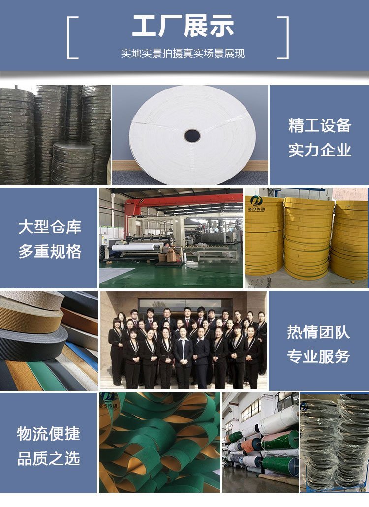 上海洛汐传动科技有限公司主要从事各类轻型输送产品的生产、研究、开发。拥有先进的PVC输送带生产线、成熟的生产工艺,及富有实践经验的工程师和技师。能提供大量不同规格,材料的高品质工业皮带,年产量达到30万平方米。