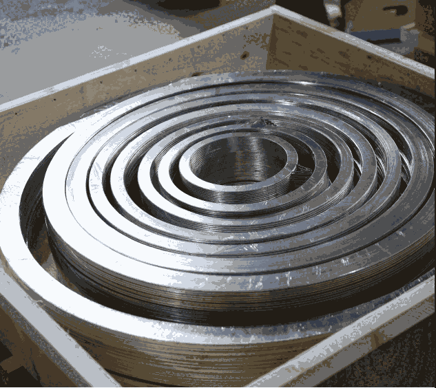 金属缠绕垫片(基本型)是采用标准的SS304、SS316(“V”形或“W”形) 金属带及其它合金材料与石墨、石棉、聚四氟、无石棉等柔性材料相互重迭螺旋缠绕,并在开始及末端用点焊方式将金属带固定而成。 性能:耐高温、高压、耐腐蚀,具有良好的压缩率和回弹率。 应用:石油、化工、电力、冶金、船舶、造纸、医药等法兰连接处的管、阀、泵、人孔、压力容器及换热设备的密封部位是理想的静密封材料。
