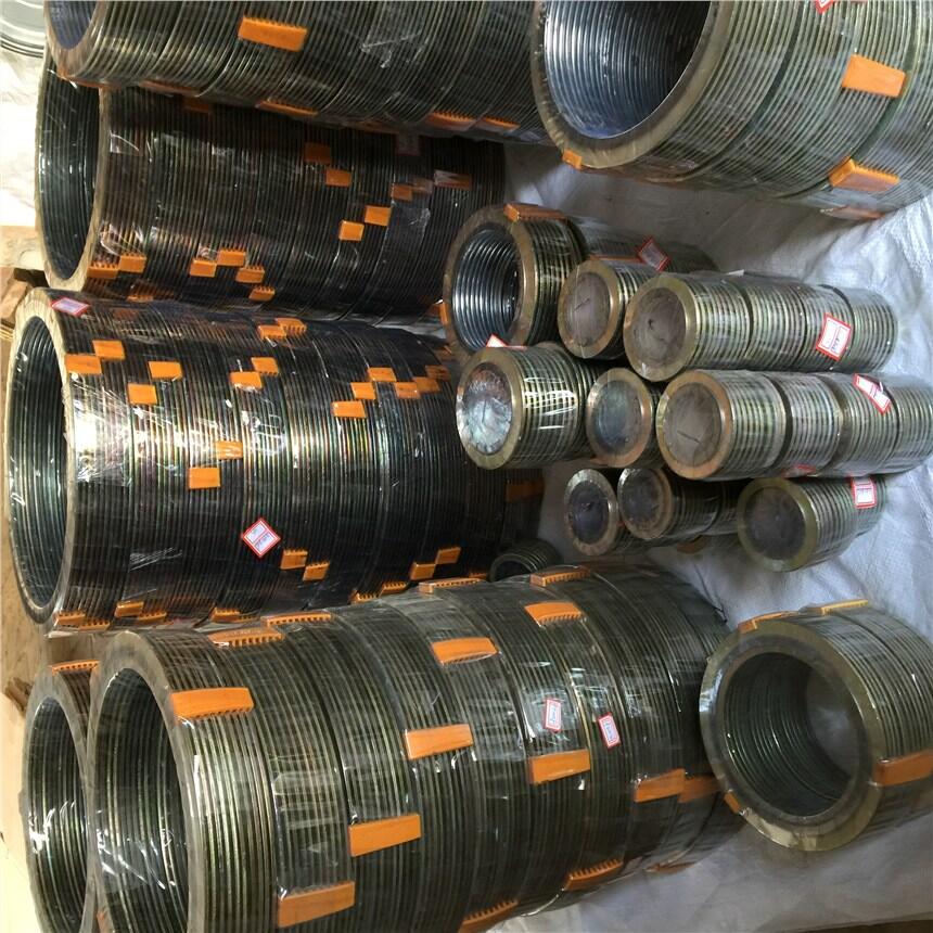 金属缠绕垫片是选用优质合金带或不锈钢带材料,以石墨、石棉、四氟作填充材料,作“V"或“W"型相间螺旋缠绕制成。应用于石油、化工、机械、冶金、电力、造船及管道、阀门、泵、压力容器、冷凝器、塔、人孔、手孔等法兰连接处,作静密封之用。由于机械强度高,使用方便,压缩回弹性好,更适应在剧烈的温度交变场合应用。带内外环材质: OCr18N19SS304316316L蒙乃尔、纯钛带外环,带内 环,基本形。组成缠绕式密封垫片的金属带、软填料、内、外加强环的材质,您可根据不同的介质和操作条件,按此表分别选用自由组合。