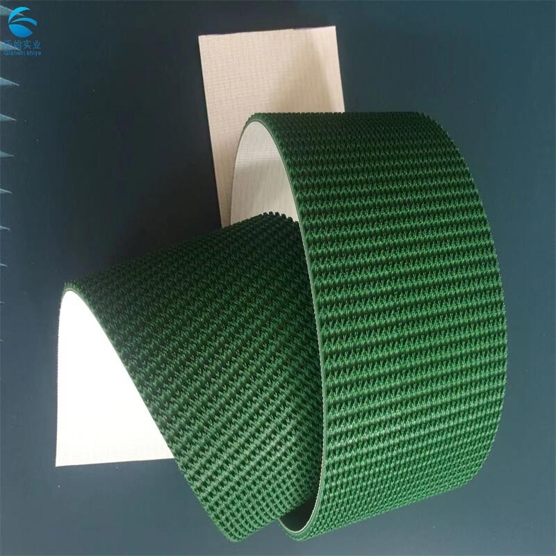 PVC其实是一种乙烯基的聚合物质,其材料是一种非结晶性材料。PVC材料在实际使用中经常加入稳定剂、润滑剂、辅助加工剂、抗冲击剂及其它添加剂。具有不易燃性、高强度、耐气侯变化性以及优良的几何稳定性。 PVC对氧化剂、还原剂和强酸都有很强的抵抗力。然而它能够被浓氧化酸如浓硫酸、浓硝酸所腐蚀并且也不适用与芳香烃、氯化烃接触的场合。随着经济的发展,输送带在各个行业的应用越来越广,其花纹的样式也有很多种。上海千始实业有限公司经过数年的发展,拥有不同的皮带库存,各种花纹和颜色的皮带均有,欢迎来电咨询并索取样品。我厂生产各种型号的花纹输送带,花纹种类多达几十种,供您任意选择,保证您在我厂买到称心如意的产品。我公司拥有的花纹pvc输送带是由工作面为花纹状的复盖胶和非工作面为平面的复盖胶与带芯构成的倾角输送带。 花纹输送带特点:适用于倾角为040°物料的输送,防止物料下滑。花纹输送带主要有以下种类:草面花纹pvc输送带,鱼骨花纹输送带,菱形格花纹pvc输送带、十字花纹pvc输送带、网眼花纹pvc输送带、倒三角花纹pvc输送带、马蹄花纹pvc输送带、锯齿花纹pvc输送带、小圆点花纹pvc输送带、钻石花纹pvc输送带、蛇皮花纹pvc输送带、布纹pvc输送带、大圆台花纹pvc输送带、波浪花纹pvc输送带、搓板花纹pvc输送带、一字型花纹pvc输送带、细直条花纹pvc输送带、高尔夫花纹pvc输送带、大方格花纹pvc输送带、亚光花纹pvc输送带、粗质地花纹pvc输送带、格子花纹pvc输送带,人字形花纹输送带等各种花纹输送带,花纹输送带,厚度:2mm3mm5mm7mm8mm12mm花纹输送带 是由工作面为花纹状的复盖胶和非工作面为平面的复盖胶与带芯构成的倾角输送带。主要采用硬度较小的pvc精密加工在制作,聚酯布层采用pu浸渍处理,具有很强的拉力,耐摩擦而且摩擦系数小,制作轻型爬坡输送带,在较小坡度输送打包好的和散装物品过程中,有很好的效果,主要应用在爬坡输送机,陶瓷打蜡机,机场输送带行李,邮局输送包裹,邮件。厚度大的pvc花纹输送带,用在大理石,花岗岩,陶瓷的抛光处理,表面有利于在加工过程中快速排出污水,更有效的防止产品移动。