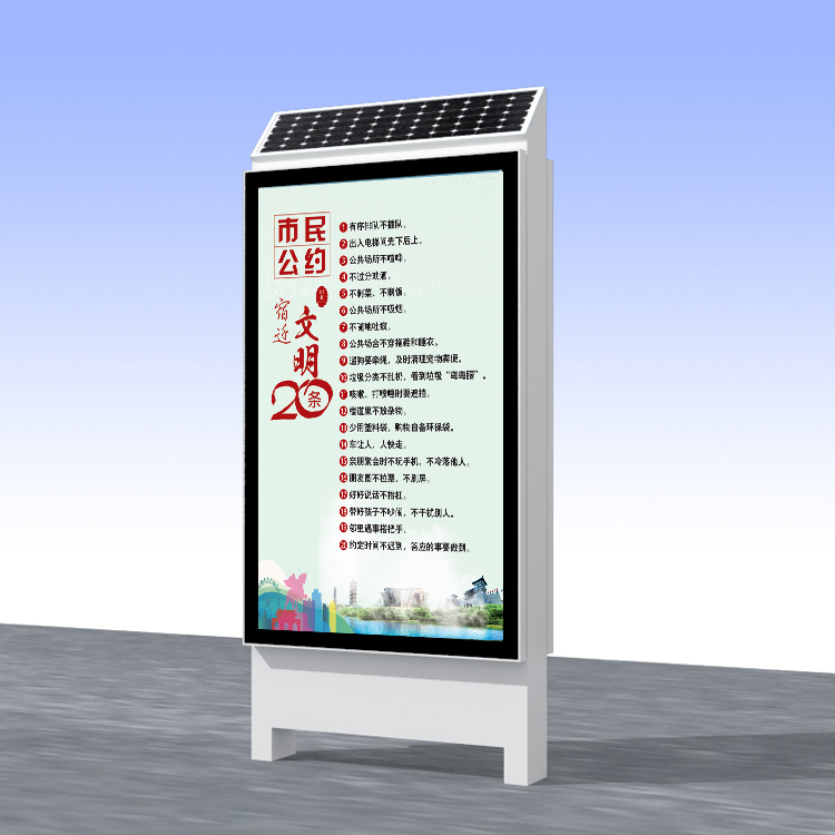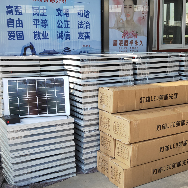 太阳能广告灯箱是由太阳能供电系统和广告灯箱组成。太阳能供电系统包括太阳能板、蓄电池、控制器、太阳能支架;广告灯箱由含灯箱和广告位相组成。太阳能供电采用3v或12v组成,每天工作亮化时间通长为4小时,采用光控天黑就亮,亮4小时就自动关闭。广告灯箱的款式规格大小要按客户要求定制生产。更多太阳能广告灯箱技术要求请电话联系厂家:052784467688 18951590710