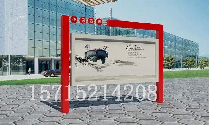 广告灯箱的对象是动态中的行人,行人通过可视的广告形象来接受商品信息,所以设计要统盘考虑距离、视角、环境三个因素。在空旷的大广场和马路的人行道上,受众在10米以外的距离,看高于头部5米的物体比较方便。所以说,设计的第一步要根据距离、视角、环境三因素来确定广告的位置、大小。云南初中宣传栏高中宣传栏挂式文化长廊