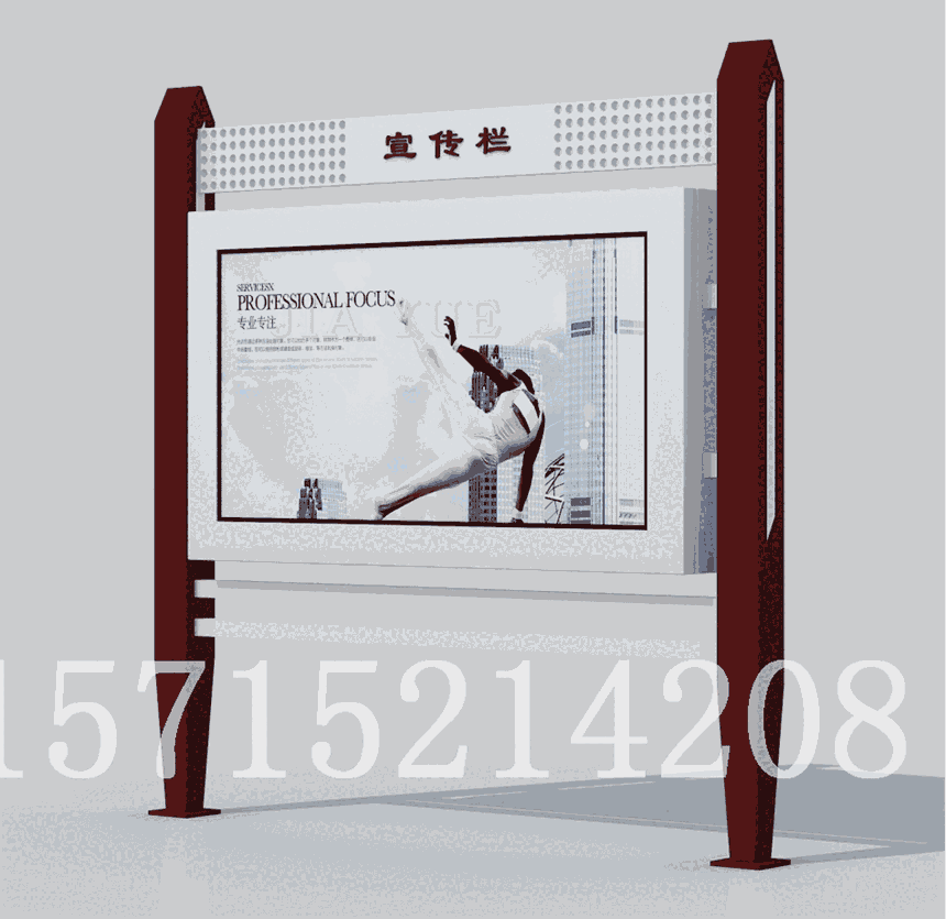 数控高精度切割下料,确保宣传栏切口水平;高级技工精心焊接,确保美观、安全、牢固;表面静电深度喷塑处理,雨水自行清洁;确保10年无腐蚀。