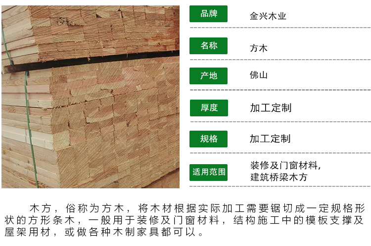 (江生: 13929142933)是一家专门为个体/建筑公司/政府工程等提供各种规格木材方料及各种特殊规格的方木等的供应公司。专业加工以下几种原木料:本地松、湿地松、杂木、杉木、桉木、何木、 澳大利亚松、新西兰松等原木。工厂配备有大型的木材加工设备数台,能适应各种建筑工地等客户需要的方料要求,送货及时。