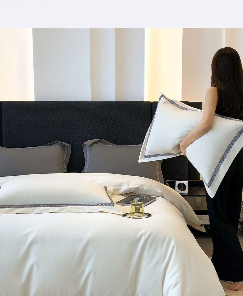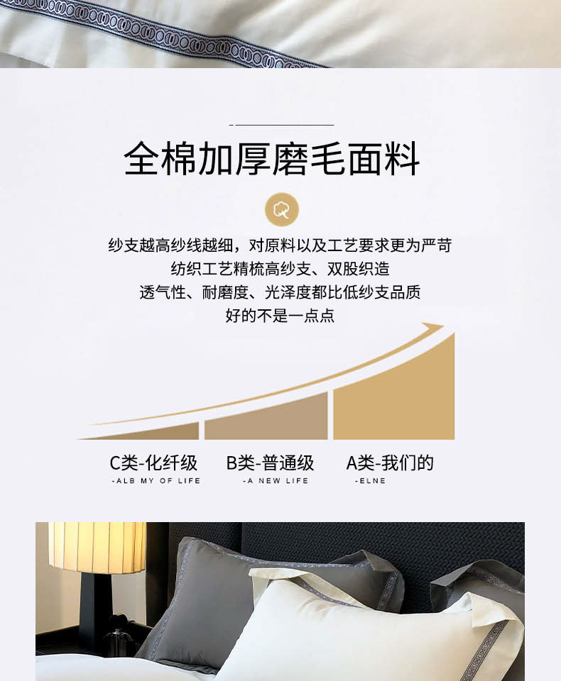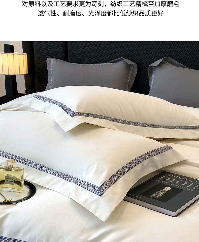莫凡纺织专业生产高档宾馆布草加厚全棉磨毛四件套简约轻奢酒店风