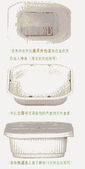 那么如何用安全、高效、健康的使用自加热餐盒呢?下面用一组图片告诉大家正确使用自加热餐盒的方法及步骤。