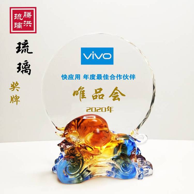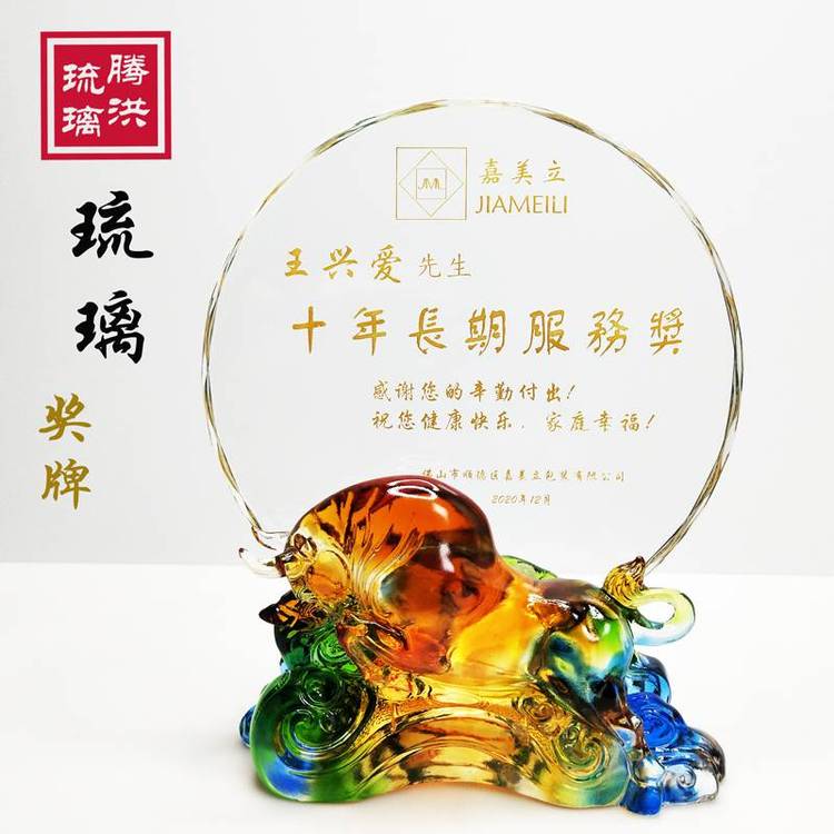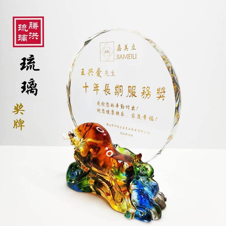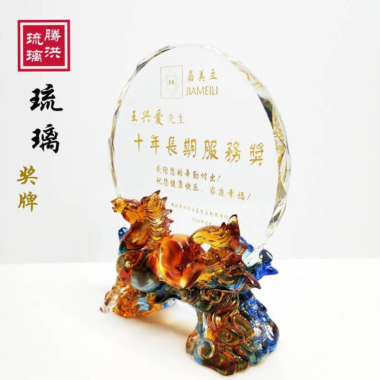 定制马到成功奖牌 10周年奉献奖牌 表彰老员工忠于职守琉璃奖牌纪念品