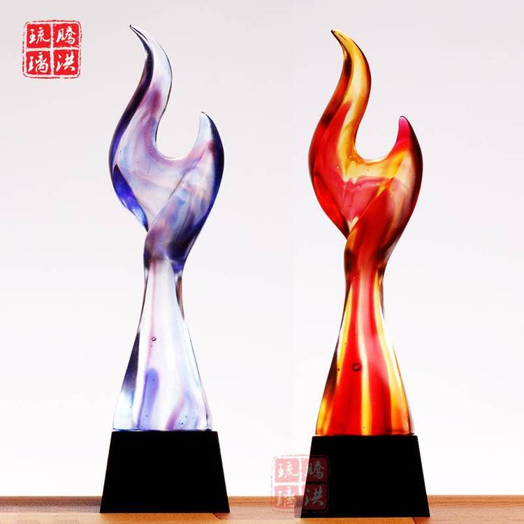 ?重庆古法琉璃奖杯纪念品定制_公司年会颁奖琉璃奖杯纪念品刻字