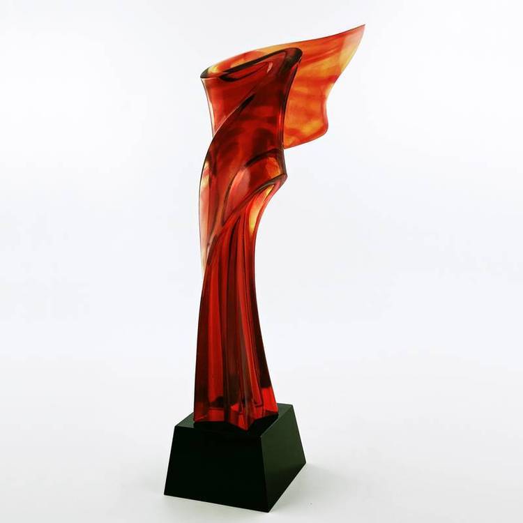 4.高温烧制:将 原料以1400℃以上高温熔制成各种彩色水晶玻璃,并经过多次 清洗后,按作品用料比例置于模具中,并设定严格的升、降温曲线,炉温必须控制在1000℃±5℃以内。烧制过程长达15天以上,使水晶原料, 到每个细微处。方可确保作品精细奇巧、立体、真实、流线飘逸、清晰。