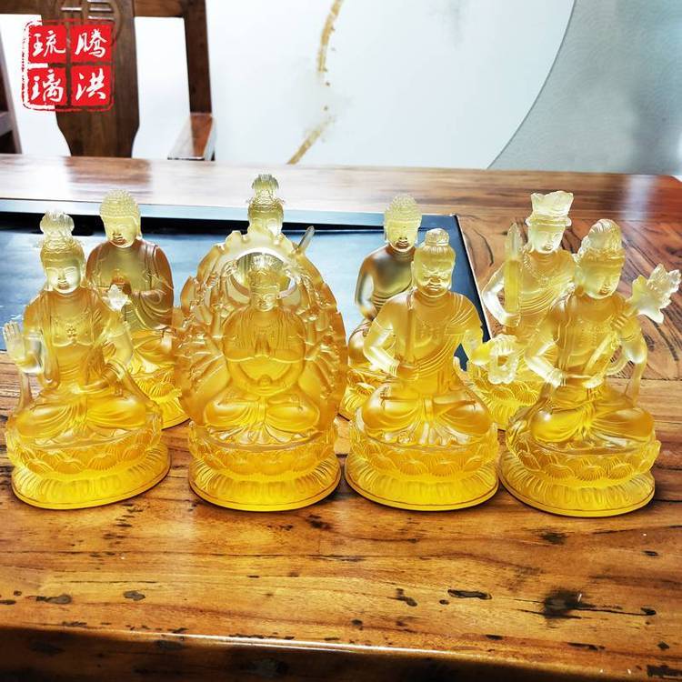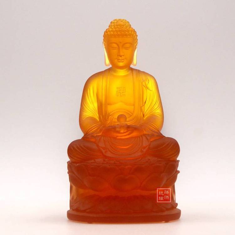 水琉璃佛像厂家琥珀色仿琉璃佛像小号透明水琉璃佛像批发