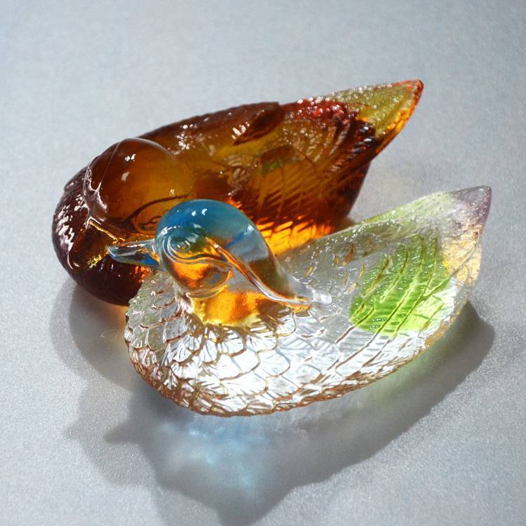 北京新婚送礼琉璃鸳鸯摆件礼品古法琉璃工艺礼品鸳鸯摆件刻字