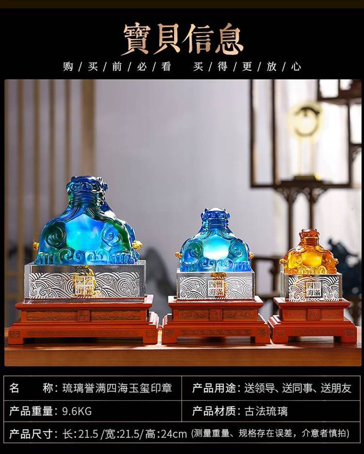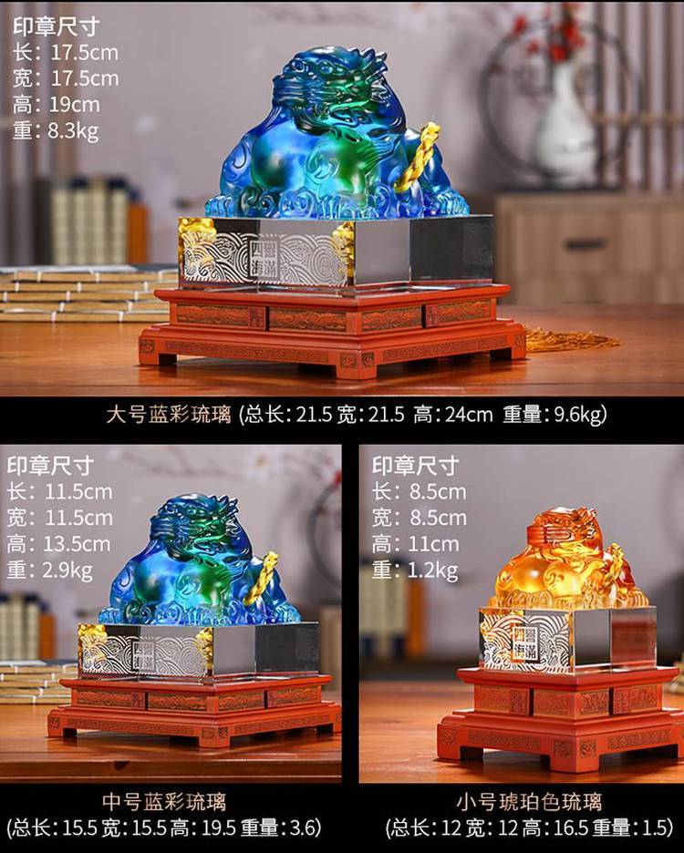 生产工艺:古法琉璃脱蜡烧制 琉璃貔貅印章摆件