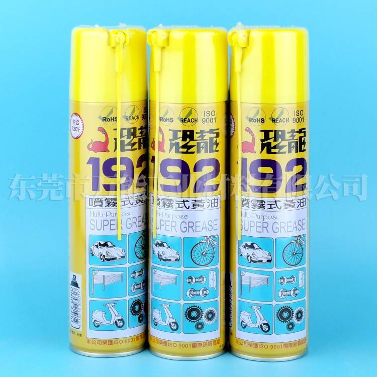 ?恐龙192喷雾式黄油适用于工业设备、电动工具、汽车、家用门锁、机械保养(台湾机械保养均用此产品)。