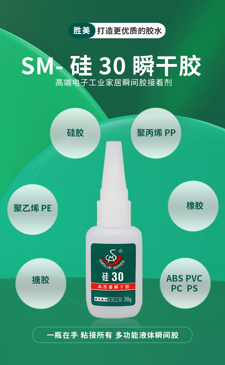 胜美SM-硅30硅胶粘PP PE塑料接着剂 橡胶搪胶瞬干胶水 厂家直供