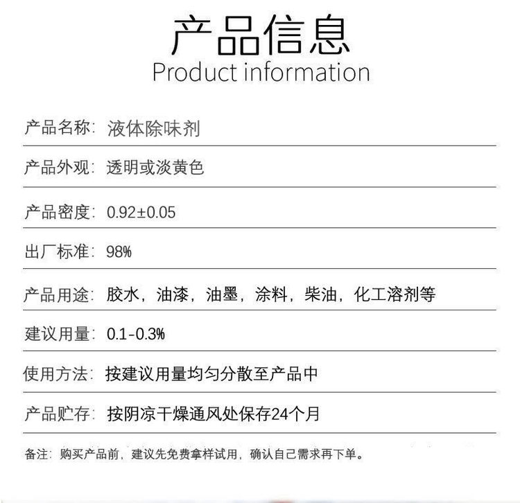 产品名称 | 涂料除味剂 | ||
