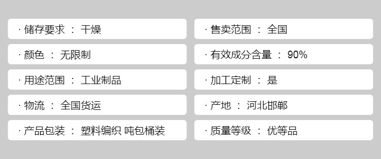 产品包装 | 塑料编织 吨包桶装 | ||