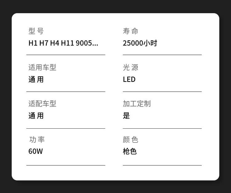 型号 | H1 H7 H4 H11 9005 9006 9012 |