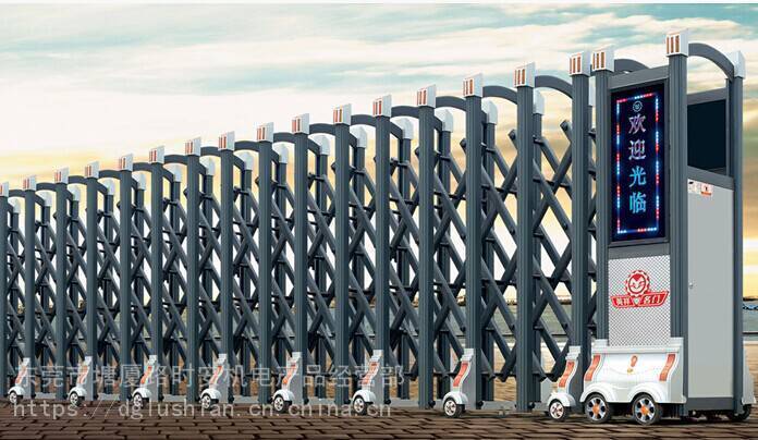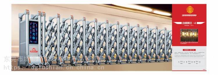 二、电动伸缩门根据材质分为不锈钢伸缩门和铝合金伸缩门。