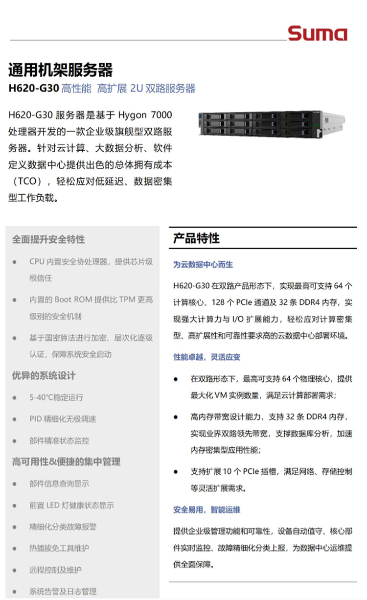 Suma中科可控服务器代理商H620-G30/C30机架式主机 海光7151处理器 CPU | 海光7151 | ||