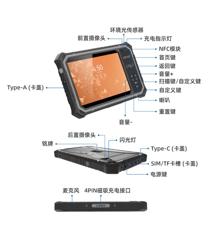 电源输入 | Type-C, 4pin磁吸充电 | ||