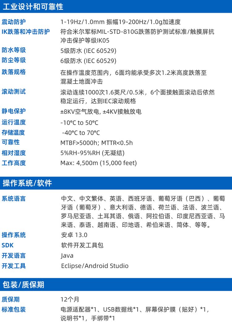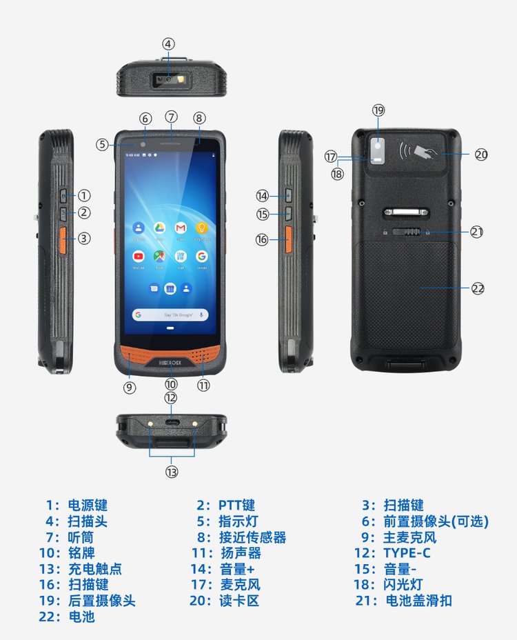 颜色 | 4 64G 黑 黄 720*1440 450nits E20 UHF Android13 | ||