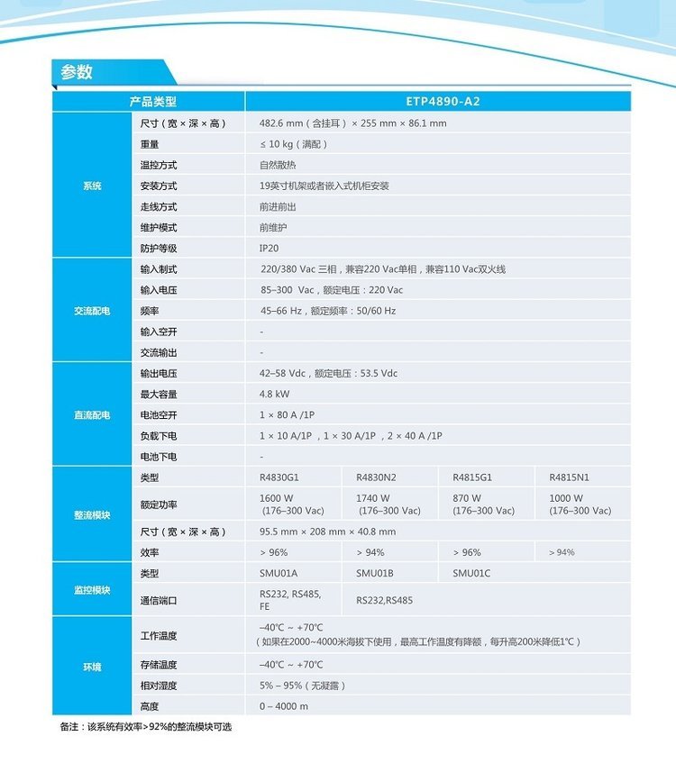 通信直流开关电源 48V90A电源系统 ETP4890-A2 华为嵌入式电源 5G基站专用直流设备