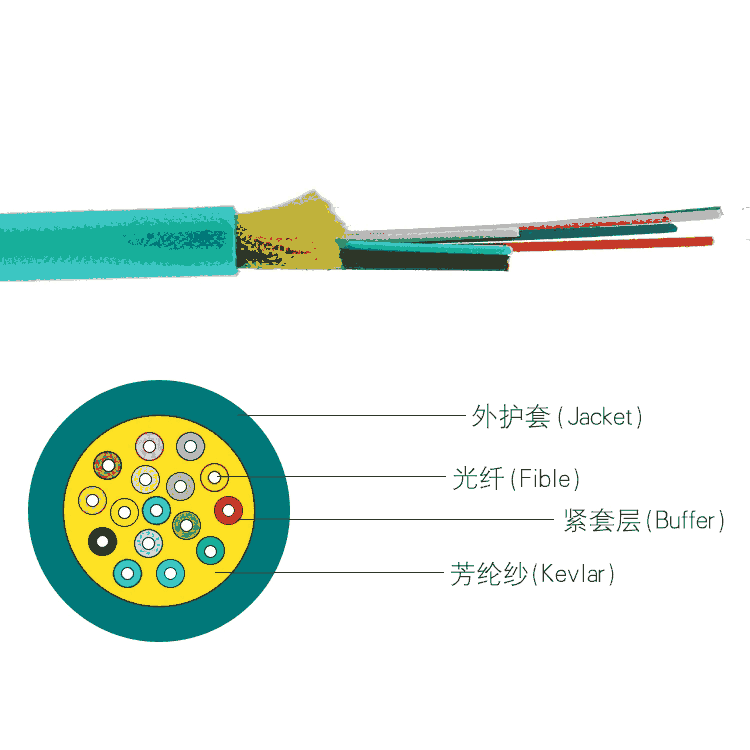 室内光缆常见的型号有:GJFJH和GJFJV。GJFJH是室内低烟无卤护套光缆,GJFJV是室内PVC护套光缆(H指的是LSZH低烟无卤护套,V指的是PVC阻燃护套)。室内光缆主要适用于建筑物内的布线,以及网络设备之间的连接,无金属。室内光缆一般距离不长,可以用多模,同样多模带宽可以分别使用千兆,万兆的光缆,一般非金属加强芯,利用芳纶等,通信单元会考虑抗弯曲G657型的光纤,代表性的有蝶形光缆(又称皮线光缆)等。室内光缆顾名思义一般适用于室内用的光缆,因为它在室内使用所以他不需要有防水的结构,所以柔软度比较好,弯曲性能高。传输速度快,信号清晰稳定,搞干扰性好,传输流量大。室内光缆单模大多是黄色,多模大多是橙色和水蓝色。OM2,OM3,OM4光纤同属于IEC 60793-20所规定的A1a型光纤,A1a型光纤采用了50/125结构,50μm的纤芯和125μm的覆层,OM2为A1a.1,OM3为A1a.2,OM4为A1a.3,OM3和OM4为激光优化的光纤类型,可以在850nm传输窗口提供更高的传输带宽。购买室内多模光缆一定要了解全光缆的规格,每一种规格的光缆是不通用的。