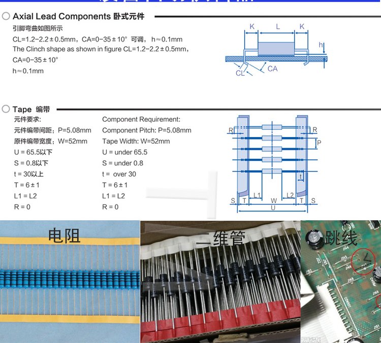 – 元件跨距:元件5.0mm~20mm(跳线 5mm~22mm )