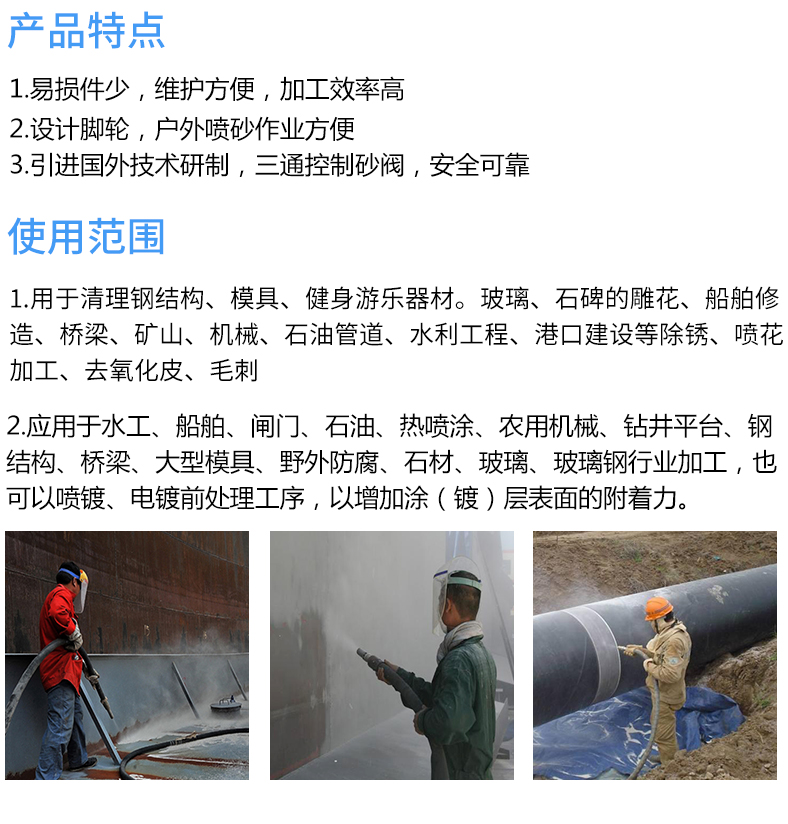 移动喷砂机户外除锈喷砂设备大理石深雕浮雕船舶翻新清洁设备