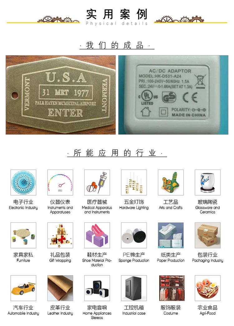 用途范围塑胶不锈钢氧化铝金属表面雕刻打码