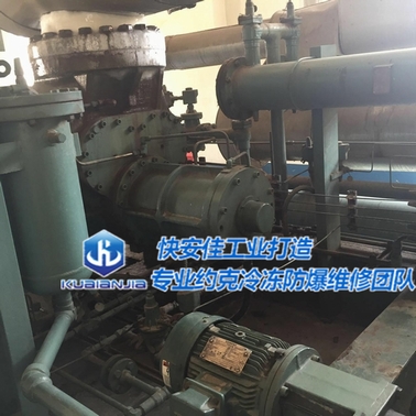 约克中央空调维修,快安佳在约克食品冷冻与工业冷冻上为客户提供全方位的系统解决方案,是包括设计、生产、安装、维护保养、预防性大修为一体的技术服务商。主要服务的冷冻品牌有:约克、GEA格拉索、前川、韦尔特VILTER等世界知名冷冻品牌。螺杆压缩机运行于某氯碱厂,长期运行,到了检修时间。我方通过精密的仪器检测压缩机与电机的噪音与振动,都超过了正常指标,联轴器同心度偏移大。快安佳工程师对压缩机与电动机进行拆机修复;转子齿型与线性修复;机体、排气端、吸气端修复;滑阀修复推演;电子定子重绕等。