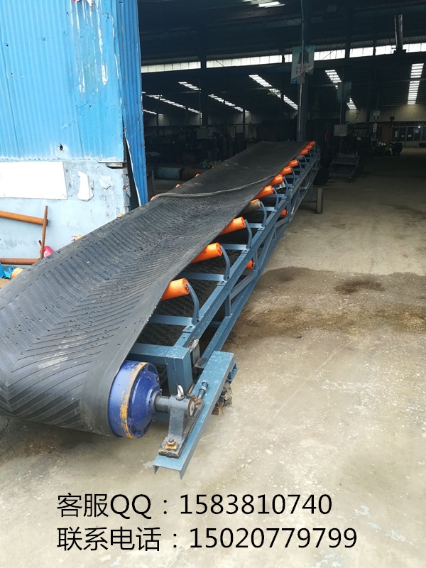 主要由机架、输送皮带、皮带辊筒、张紧装置、传动装置等组成。机身采用优质钢板连接而成 ,由前后支腿的高低差形成机架,平面呈一定角度倾斜。机架上装有皮带辊筒、托辊等,用于带动和支承输送皮带。有减速电机驱动和电动滚筒驱动两种方式。