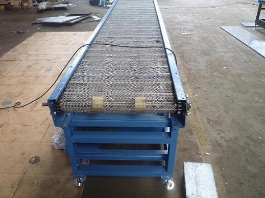 塑钢网带输送机:是对传统皮带式输送机的补充,它克服了皮带机皮带撕裂、刺破、腐蚀的缺点,为客户提供的一种安全、快捷、维护简单的输送方式。由于网带输送机使用模块网带,而且传动方式采用链轮驱动,所以输送网带不易蛇行、跑偏,并且由于带子厚实可以经得起切割、碰撞,及耐油、耐水等特性,使得各业界使用时不致在维修保养上产生困扰,尤其在更,,换输送带上塑钢网带输送机更减少一笔开销。采用不同材质的网带可以起到不同的输送作用并且满足不同环境的需要,我们通过塑料材质的改性使输送带能够满足环境温度零下-10度至120摄氏度之间的输送要求,网带节距有12.7、19.05、25.4、27.2、38.,1、50.8可选,开孔率由2%至48%可选。