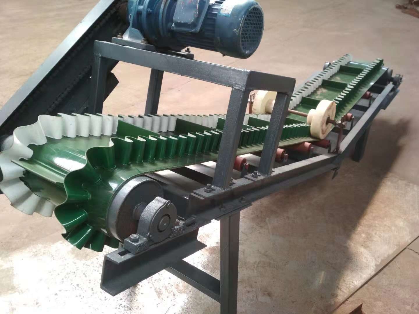 轻型爬坡输送机大倾角装车输送机,带挡边铁隔断皮带输送机糊状及液态状物料,波状档边格挡,波状挡边输送带可沿水平。