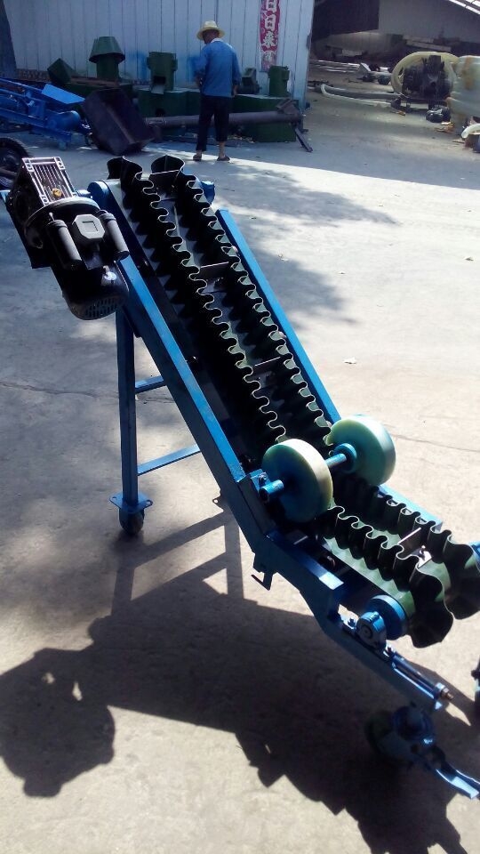 波状挡边输送带被广泛应用于港口、冶金、矿山、电力、煤炭、铸造、建材、粮食、化工等领域物料输送。能使各种散装物料以0-90度作任意倾角连续输送、具有输送倾角大、使用范围广、占地面积小。无转运点、减少土建投资、维护费用低、输送量大等特点,解决了普通输送带或花纹输送带所不能达到的输送角度。波状挡边输送带可根据要求设计成一套完整输送系统,避免了间断输送和复杂输送的提升系统。波状档边格挡,节省人力物力等特点,适宜输送易撒落的粉状大倾角皮带输送机带防尘罩 粮食专用输送机